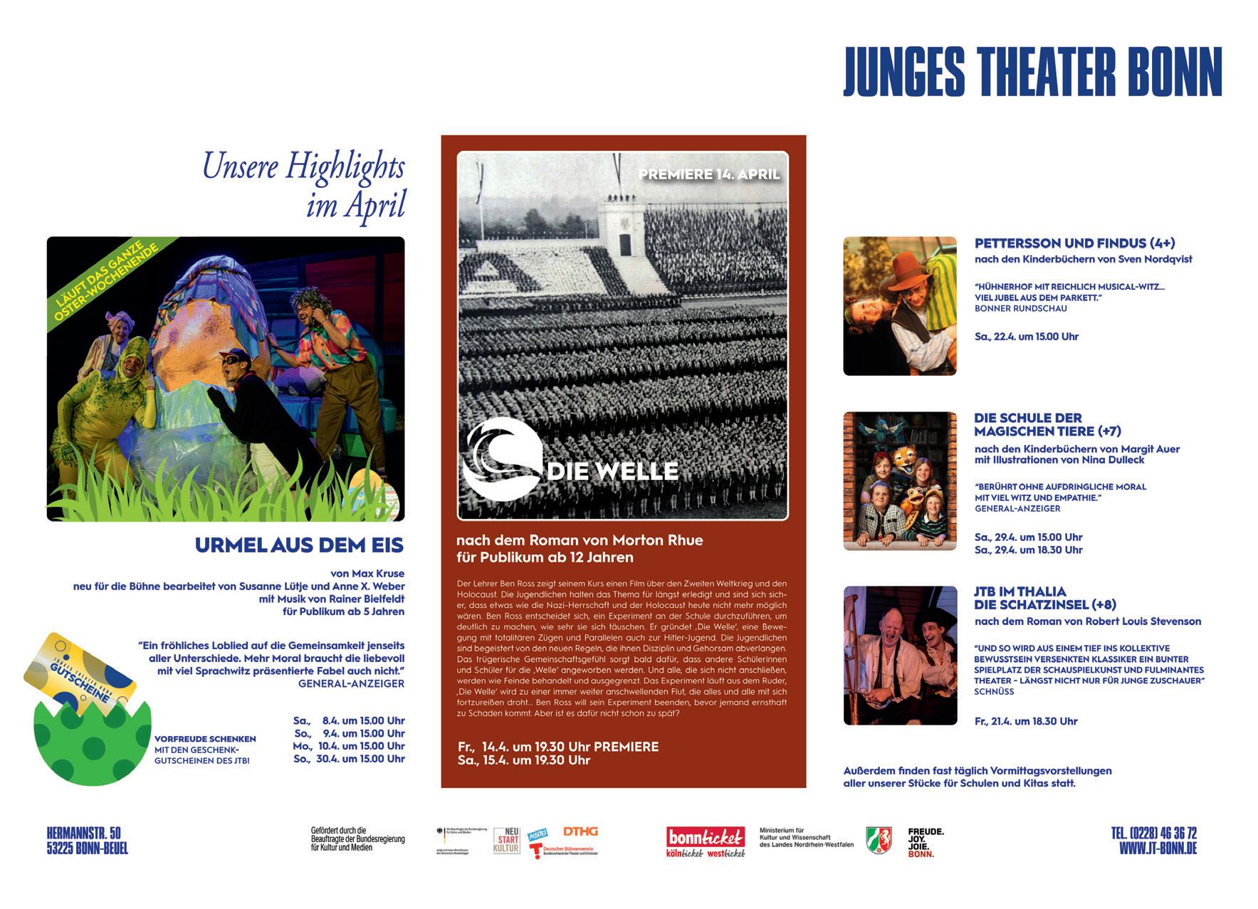 3 20:00 Untiefe - a depthless place Jan Jedenak- Theaterfiguraler Formen. Ein Auswärtsspiel derstudiobühneköln. Eintritt: 15,-/7,- D TanzFaktur, Siegburgerstraße 233w JOTT WE DE