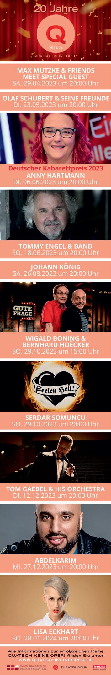 scherSelbstversuch überdie Liebe. Nominiertfürden KölnerTheaterpreis 2022. Eintritt: 6,- bis 30,- D Freies WerkstattTheater, Zugweg 10