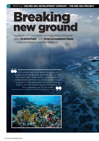 new ground Arguably the world’s most ambitious and exciting tourism and hospitality project, The Red Sea Project – led by The Red Sea Development Company – is setting new standards in sustainable development