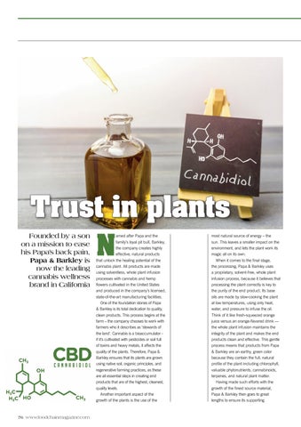 amed after Papa and the family’s loyal pit bull, Barkley, the company creates highly effective, natural products that unlock the healing potential of the cannabis plant. All products are made using solventless, whole plant infusion processes with cannabis and hemp flowers cultivated in the United States and produced in the company’s licensed, state-of-the-art manufacturing facilities. One of the foundation stones of Papa & Barkley is its total dedication to quality, clean products. This process begins at the farm – the company chooses to work with farmers who it describes as ‘stewards of the land’. Cannabis is a bioaccumulator if it’s cultivated with pesticides or soil full of toxins and heavy metals, it affects the quality of the plants. Therefore, Papa & Barkley ensures that its plants are grown using native soil, organic principles, and regenerative farming practices, as these are all essential steps in creating end products that are of the highest, cleanest, quality levels. Another important aspect of the growth of the plants is the use of the
