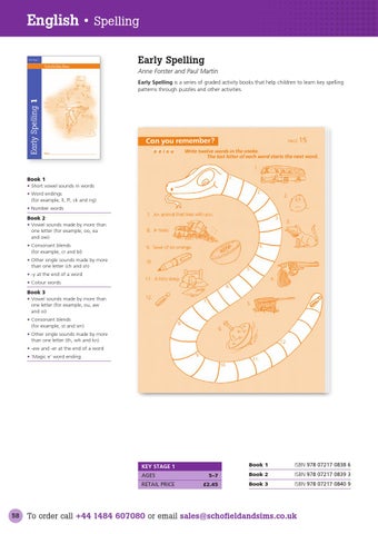 English • Spelling Early Spelling Anne Forster and Paul Martin Early Spelling is a series of graded activity books that help children to learn key spelling patterns through puzzles and other activities.