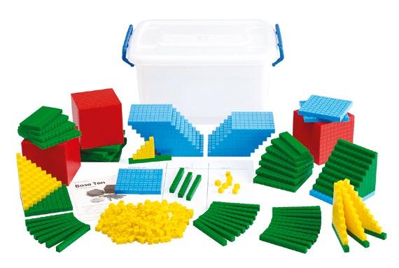 Pieces connect to help children more easily understand place value relationships. 823 pieces, 25-sheet base ten pad, and activity guide in plastic container.