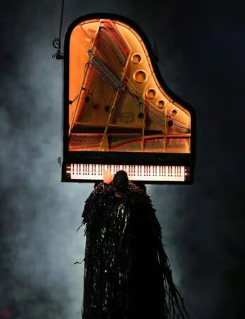 Und das ist noch nicht alles. Das Kostüm des Pianisten ist mit VHS-Bändern aus seiner Kindheit geschmückt, die seine Mutter in der Schweiz sorgfältig zusammengestellt hat. «Dieser Look umfasst alle Filme aus meiner Kindheit (Digimon, Pokémon, Jean Giraults Kohlsuppe, Mission Impossible). Ich liebe die Idee, dass diese Streifen, die mir so viel bedeutet haben, zu einem Kunstwerk werden.» Die kleinen weissen Figuren, die das Outfit vervollständigten und von der menschlichen Anatomie in -