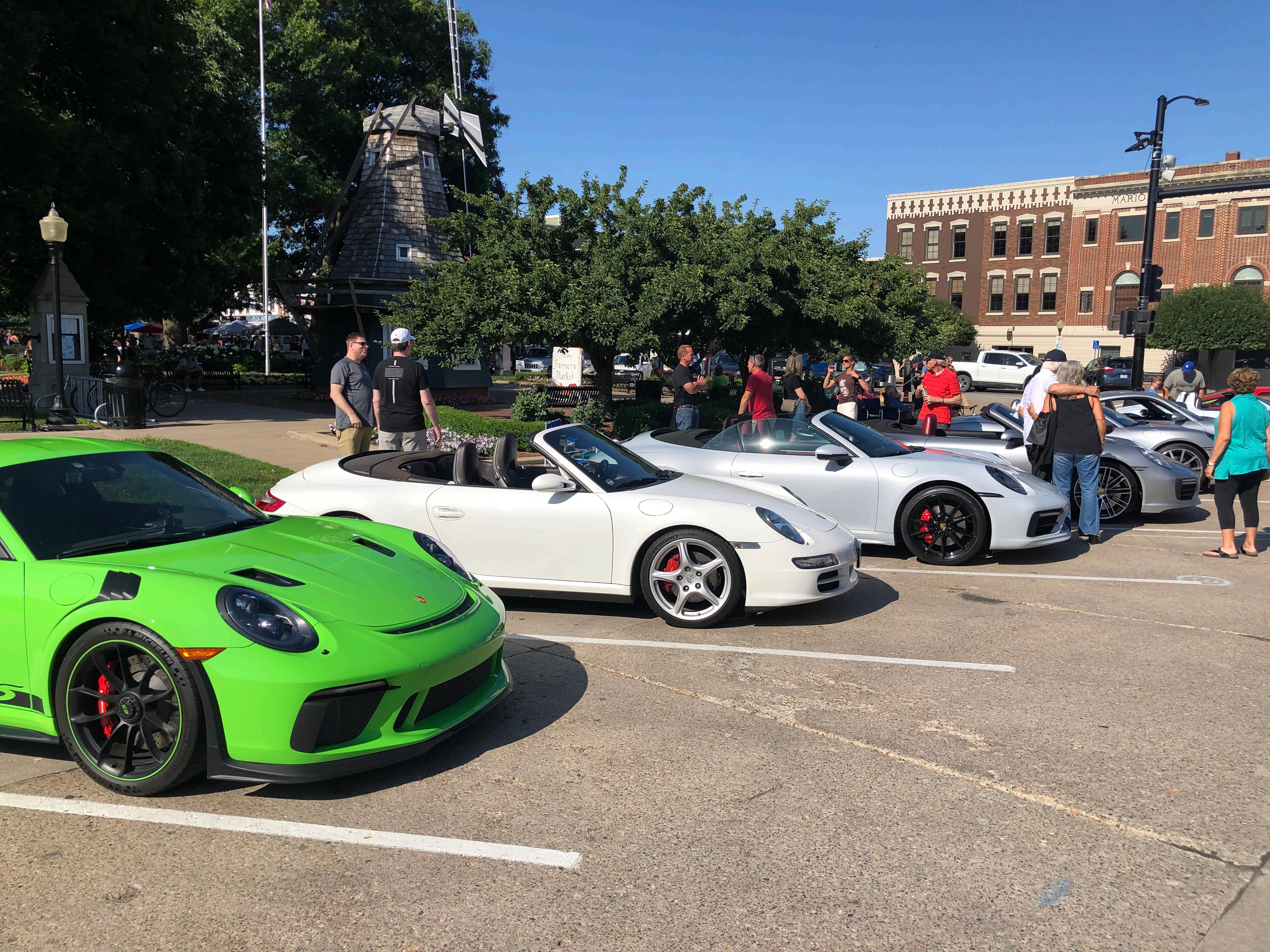 We had almost 40 Porsches at Thursday Nights in Pella!! Amazing! The weather was perfect to wander and look at all of the cars like most of Pella did. I hear we have already been asked to come back next year!