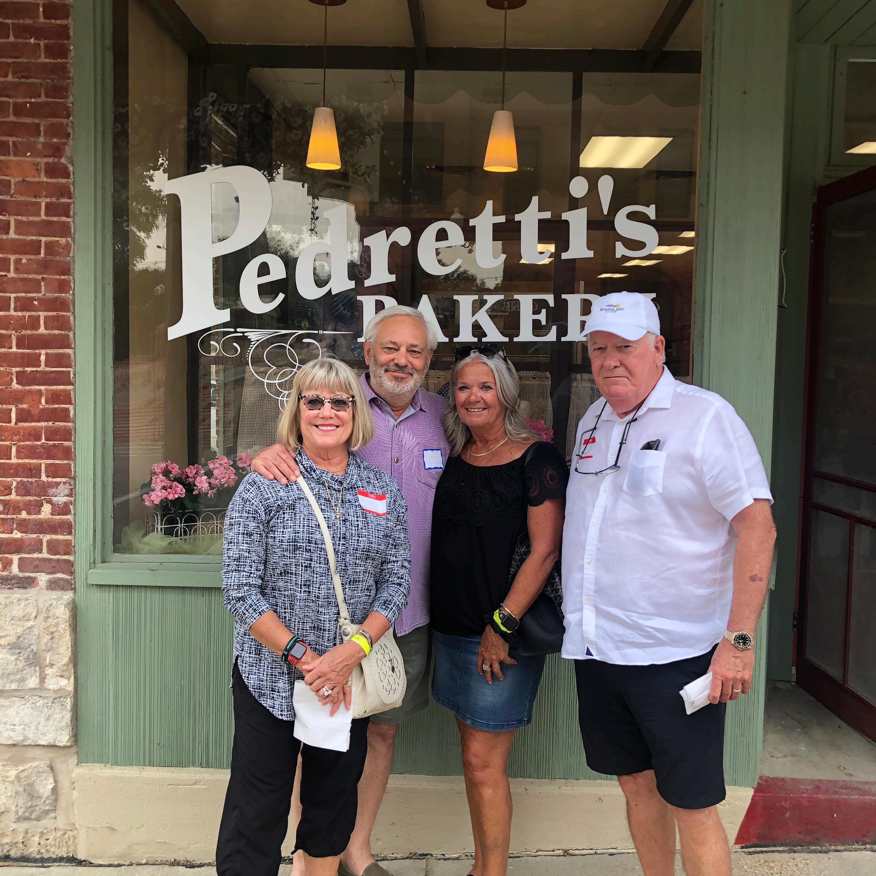Left from left to right: Kitty Metzger, Daryl Metzger, Dorothy Struthers and Joe Watton enjoy Elkader’s Pedretti’s Bakery.