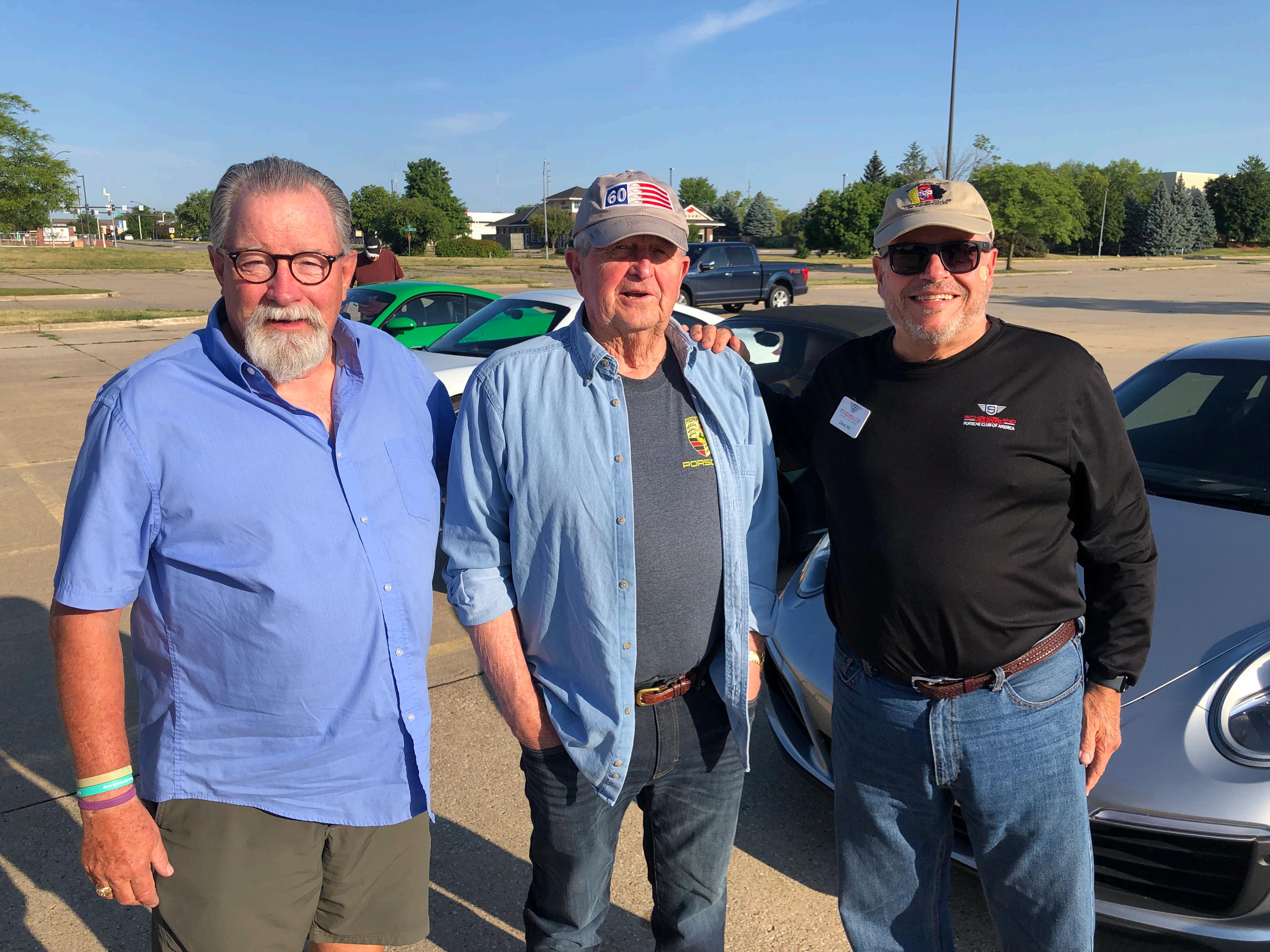 As Lao Tzu famously said: “The journey of a thousand miles begins with the first step.” So too do driving tours. Our first step is always the drivers meeting as Social Media Chair Skip Hammerman, above, is expertly demonstrating. It was an almost perfect day for a drive. Our band of over 20 cars caravanned through Iowa dodging rain showers, pot holes and construction zones.