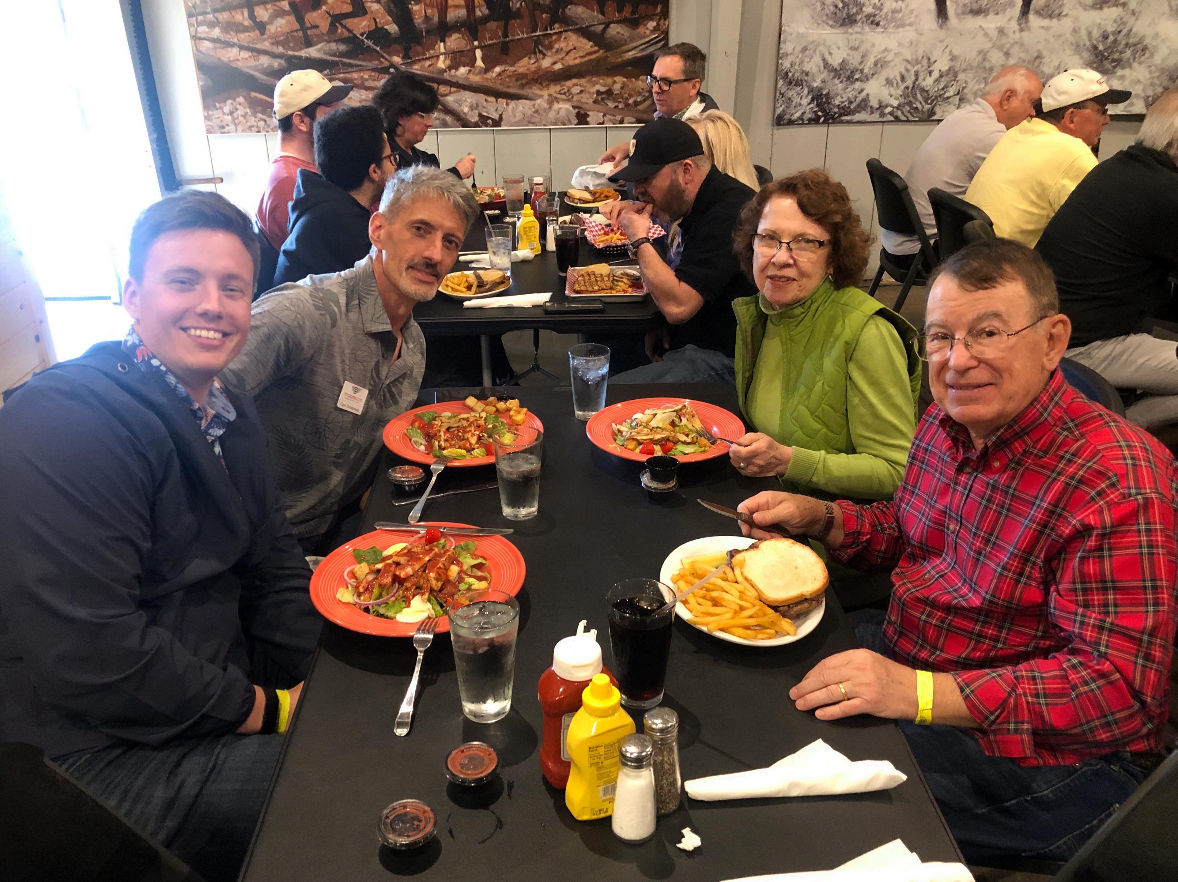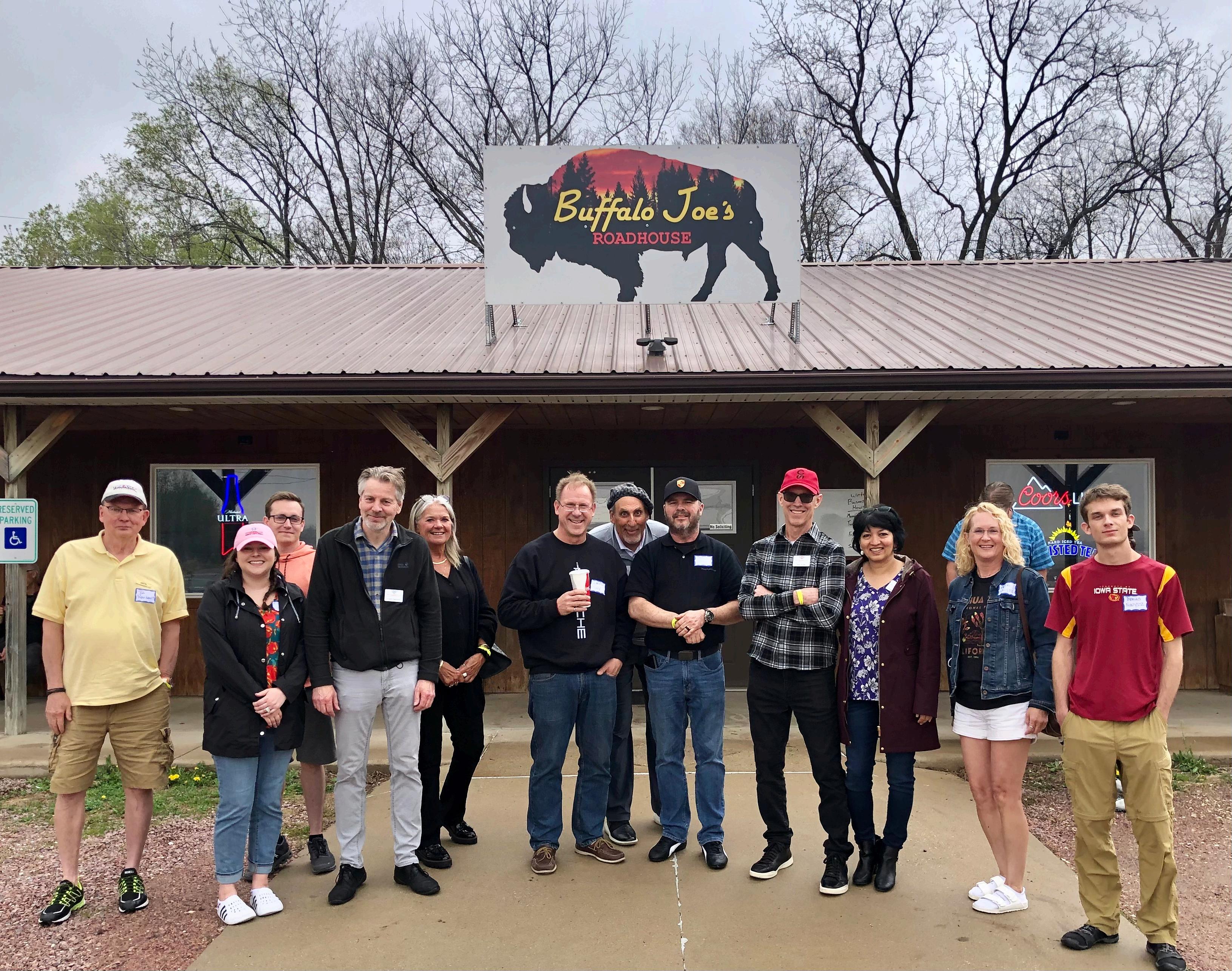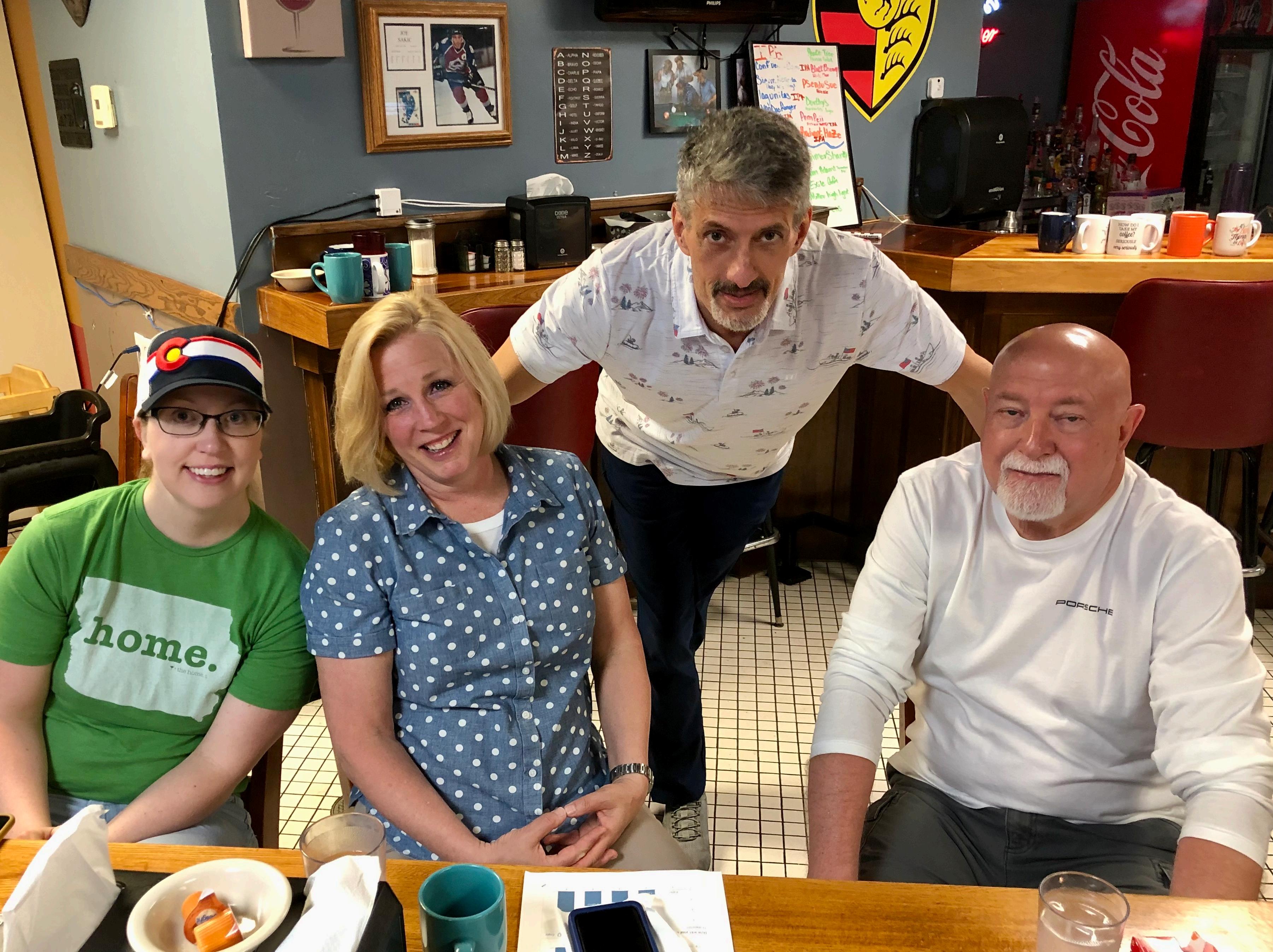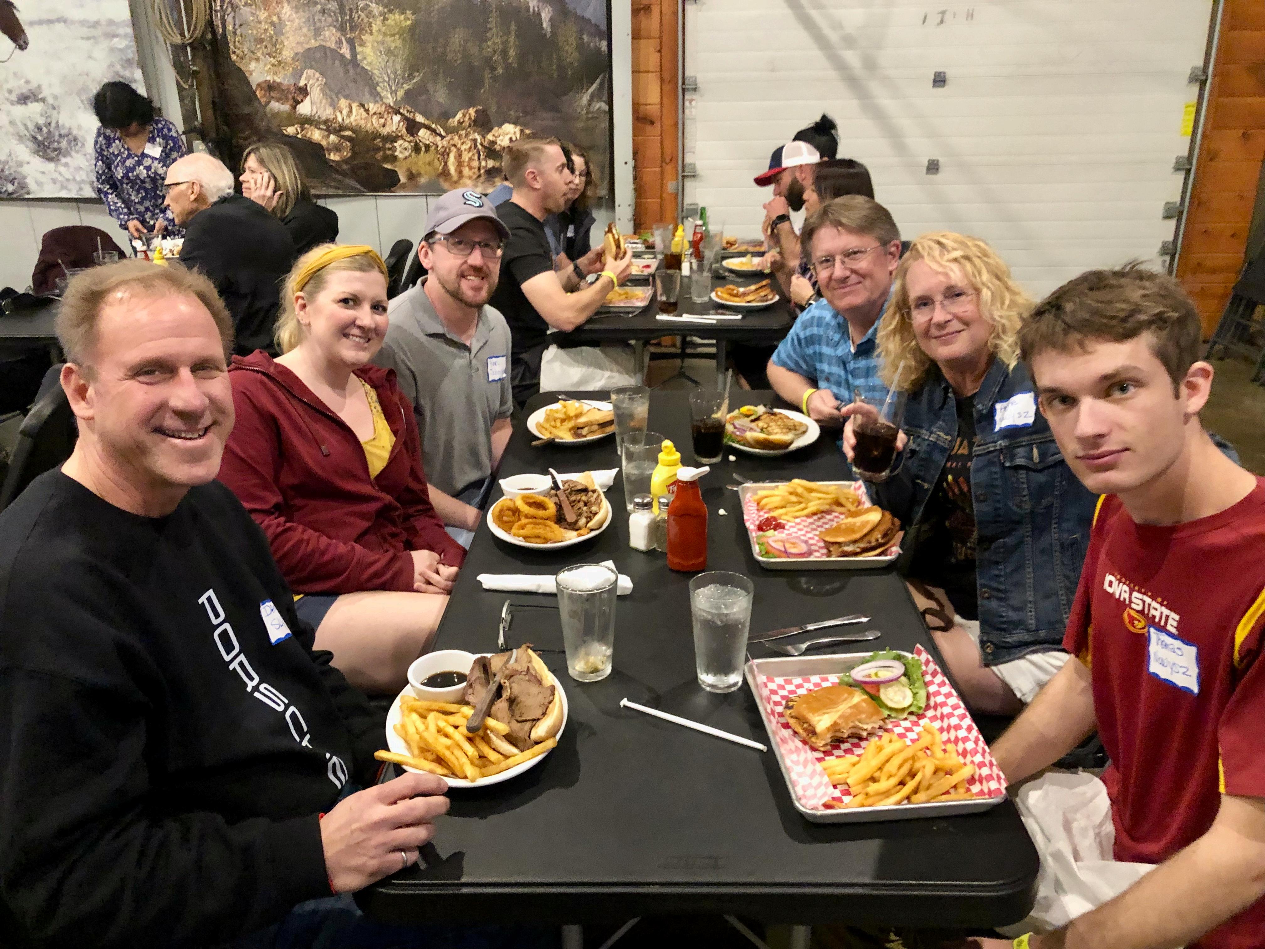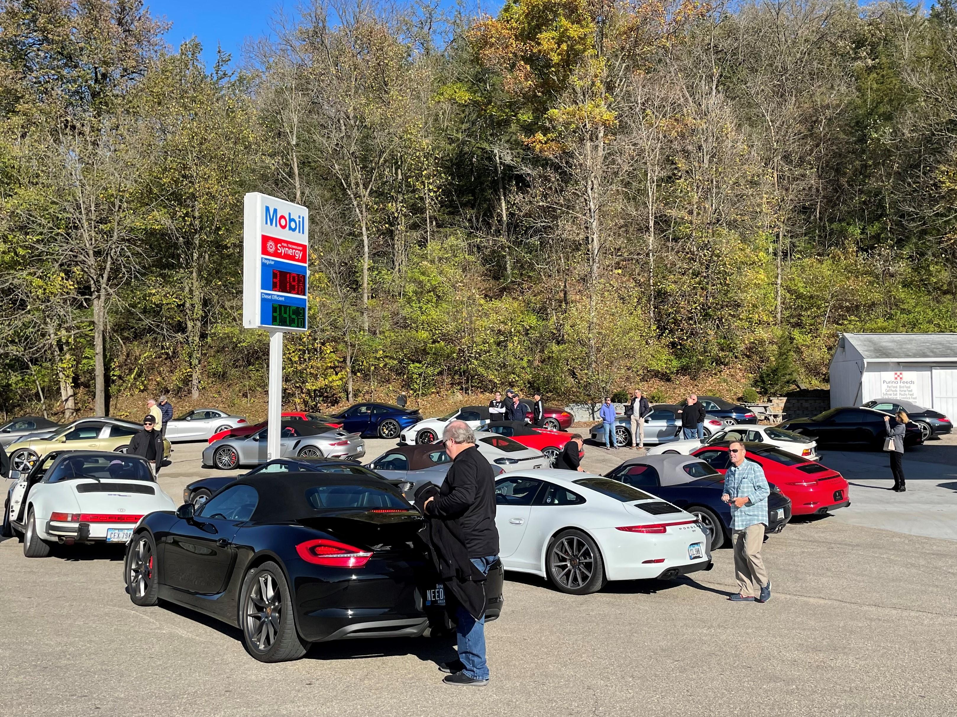 Yup, we filled up the parking lot at Buffalo Joe’s, an annual watering hole just south of Sioux City. You know 27 Porsches showing up in a parking lot in Smithland, IA is a big deal when the waitresses leave their posts to take photos for their Facebook pages. Below from left to right: Tim Reinhardt, Treasurer Kloey Runyan, Logan Runyan, Frank Krennrich, Dorothy Struthers, Dave Sly, Tour Director Jeff David, Don Parbs, Klay Kane, Shasi Parera, Angela Nowysz and Thomas Nowysz.