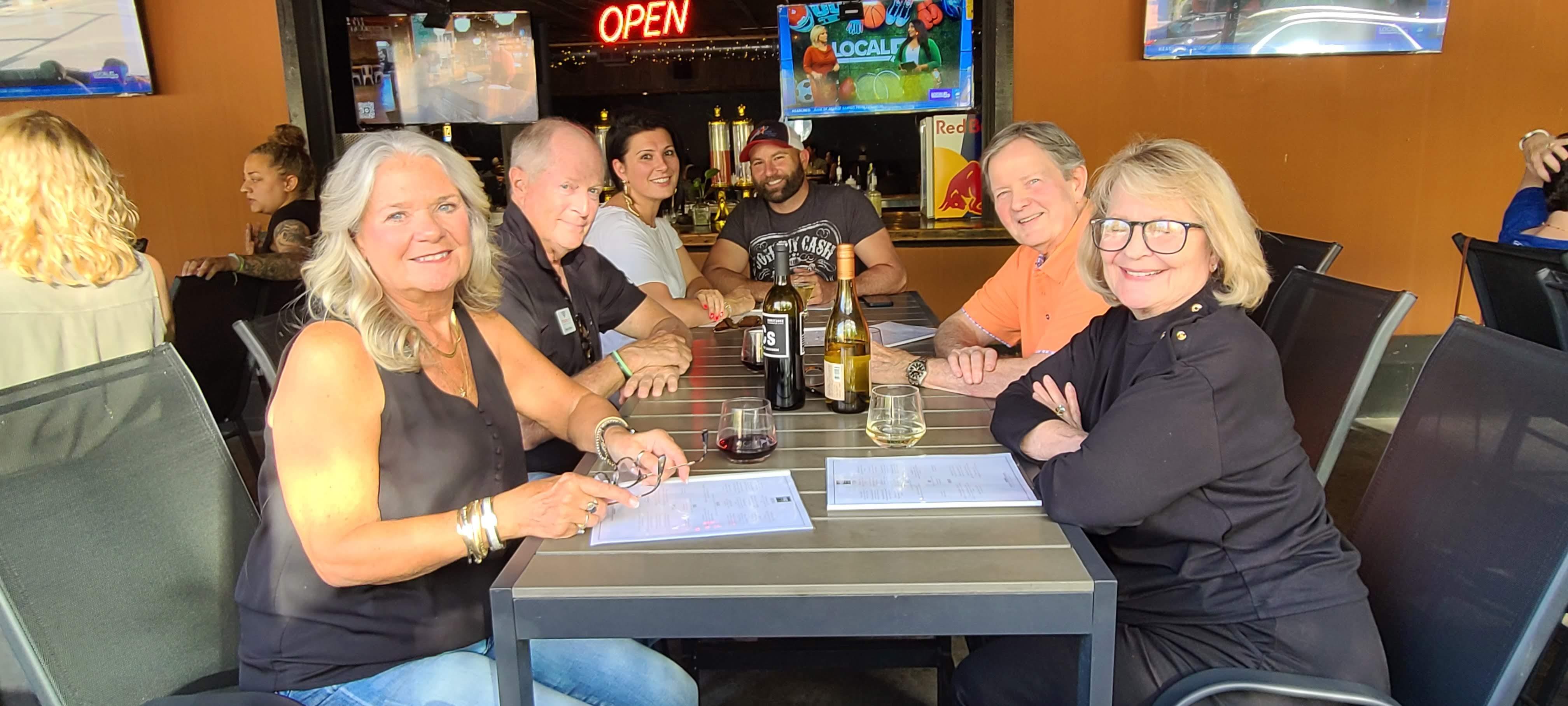 A perfect night in Downtown Des Moines was the backdrop for the May Drive & Dine. Over 60 Schoneslanders filled the outdoor patio of Vibes Kitchen and Bar. Vibes even prepared a special “Porsche Punch” for our enjoyment. Welcoming our club to Vibes, to the left from left to right: Mary David, Karen Wright and Dorothy Struthers.