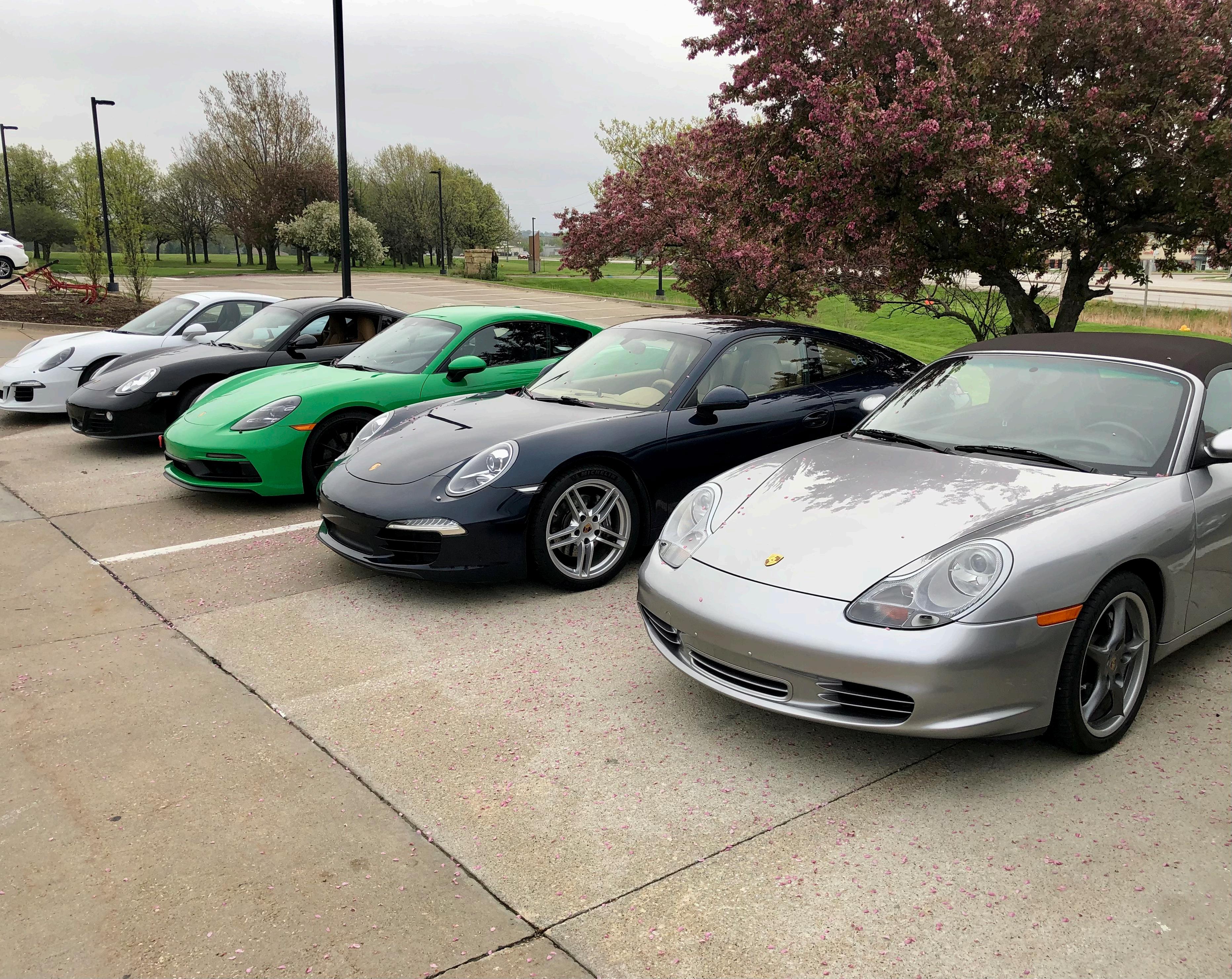 When you see a parking lot containing more Cayennes and Mecans than 911”s and Boxters you know the weather is not the best. May showers brought out SUV’s and Porsches needing a car wash. Ben Nordstrom won for dirtiest car. Phil Patterson won for the most un- Porsche-like ride with his pick-up truck..