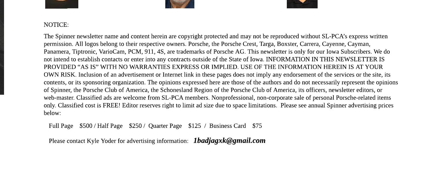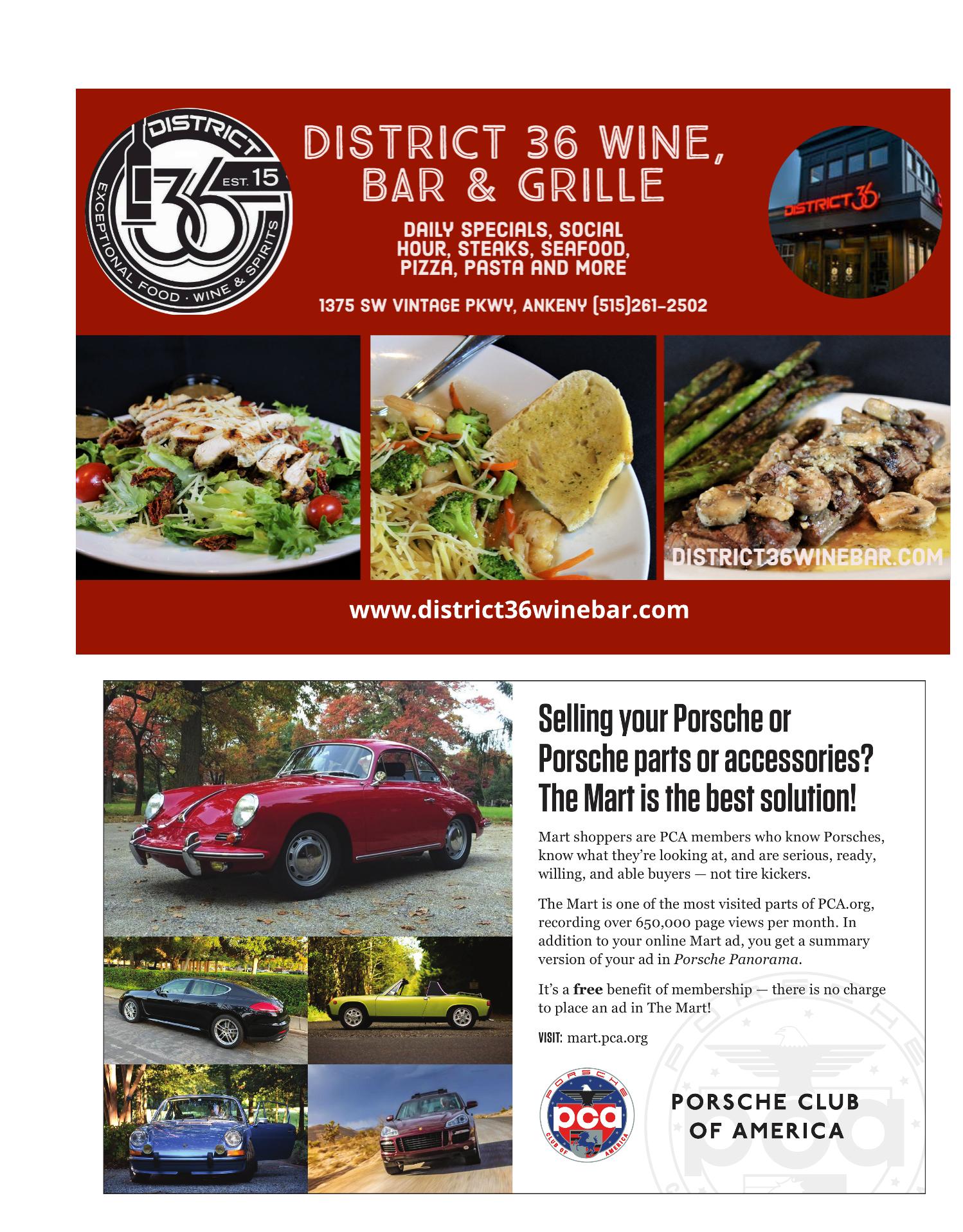 For the second year in a row, we have a joint event planned with the Great Plains PCA region for Omaha Cars & Coffee. On Friday, July12, we will leave Des Moines to drive as a group to Omaha for lunch and a museum tour before meeting the Great Plains region for dinner. On Saturday, July 13, we will park our cars in special Porsche parking for Supercar Saturday before being shuttled to and from Porsche of Omaha for breakfast. Link to register: https:// schonesland.motorsportreg.com/events/schonesland-2024-omaha-carscoffee-supercar-saturday-pca-304212
