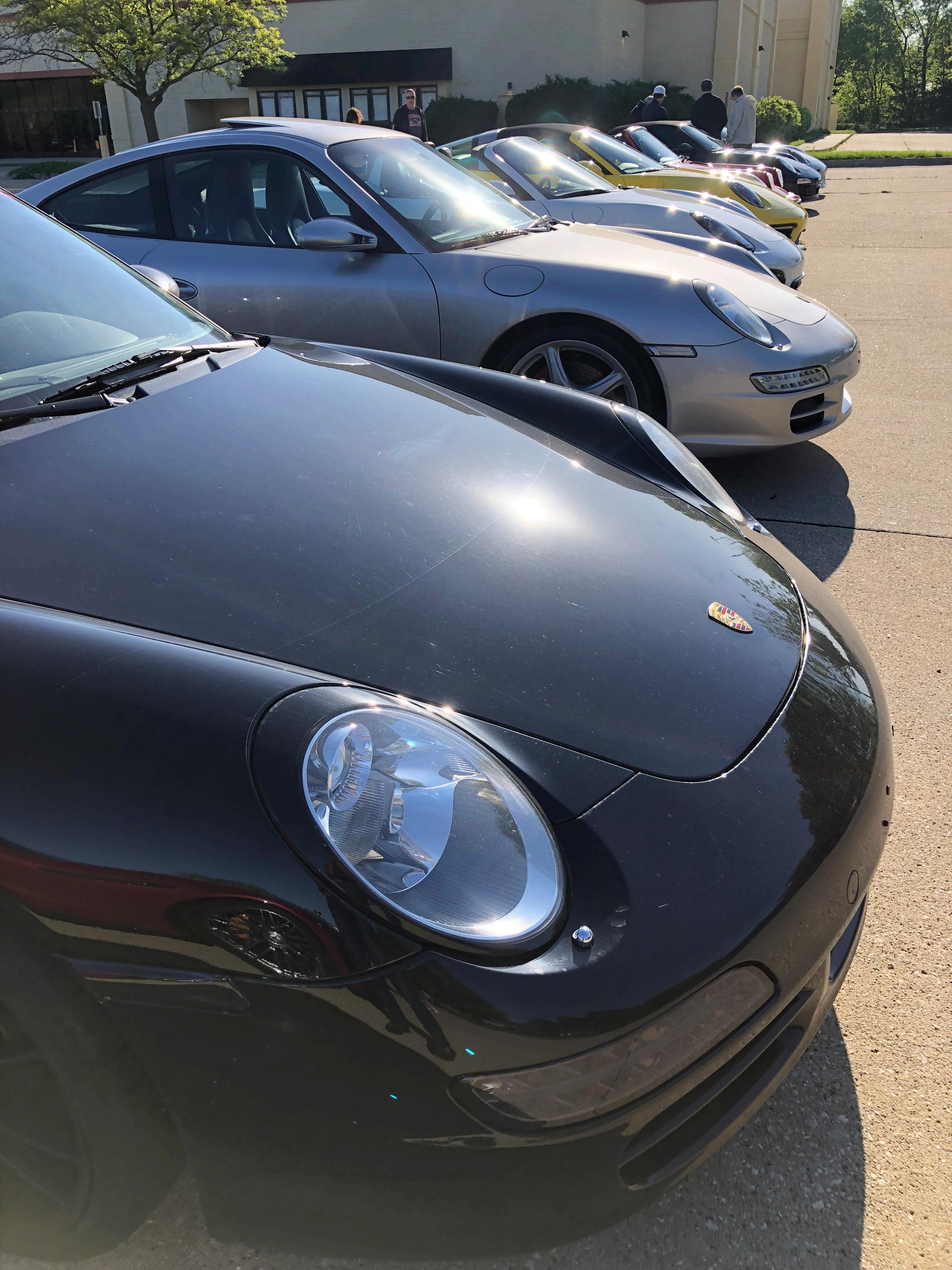 Wonderful turnout for the May Cars & Coffee. Over 20 Porsches along with a Mercedes and two Bimmers filled the south side of the AMC parking lot.