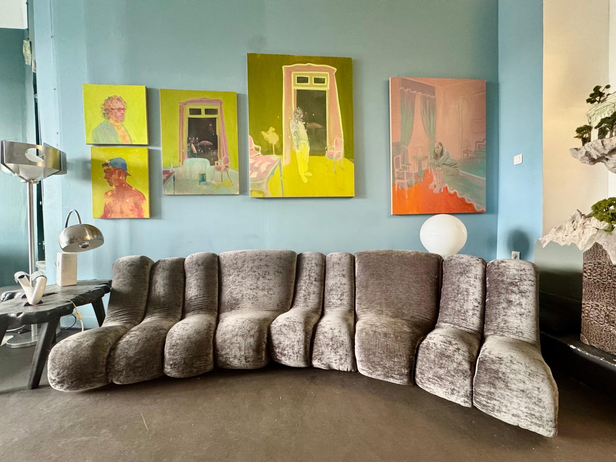 La couleur promet des mondes, c’est une matière sérieuse, cinglée, poétique, aquatique, sacrée. Vincent Ruffin cherche en elle un refuge, comme un abri, un espace autre où la douceur, l’enfance, la mémoire regardent leurs histoires. Il compose des scènes ou des portraits qu’il plonge dans des teintes à l’envers du réel. Nuances de rose, d’orange, de mauve. Il capture l’impossible – la tendresse, une drôle de grâce.