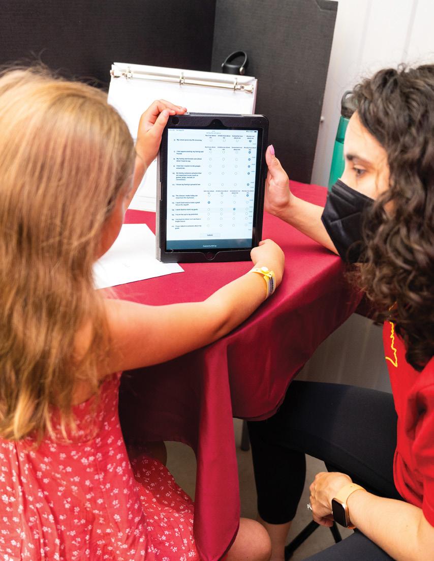 DNP student Emily Moccio assists a child completing a survey for the research project Resilience Portfolios in Youth: A Novel Measure of Protective Factors for Wellbeing at the Minnesota State Fair in August.