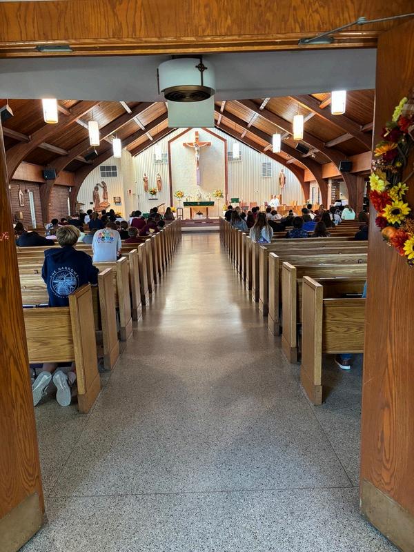 The 8th graders spent their class retreat at Our Lady of the Fields. Their regular day was replaced by a time of community building and prayer. The intention was for their spiritual and personal growth, individually and as a graduating class! The theme for the talks and activities circulated around the Sacrament of Confirmation and the strength we draw from being close to Christ in the Eucharist: to ignite, fly, and refuel The retreat concluded with a time for Eucharistic Adoration as an entire 8th grade class in the large church