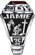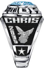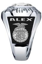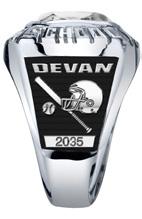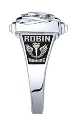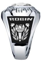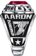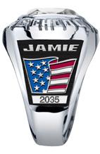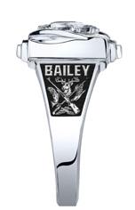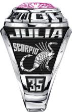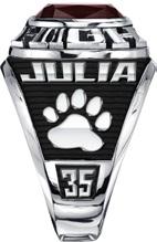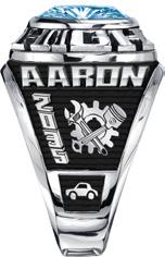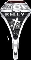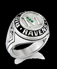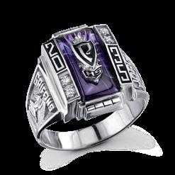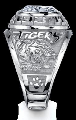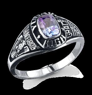 Ring Includes: Ultrium metal (silver tone), Antique Finish, Smooth or Imperial Cut Stone,Oval or Square top stone, Choice of Birthstone, 3 Engraved Initials inside ring, 1 Prideside (your choice), Polished Palmside, Custom Mascot, Limited Lifetime Warranty, Ring Replacement Program.