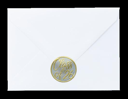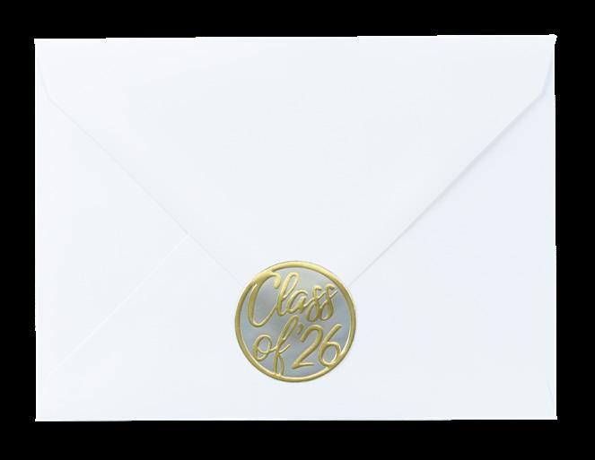 Complete your announcement with Class of 2026 embossed seals. Gold and silver design. 25 per pack.