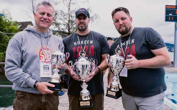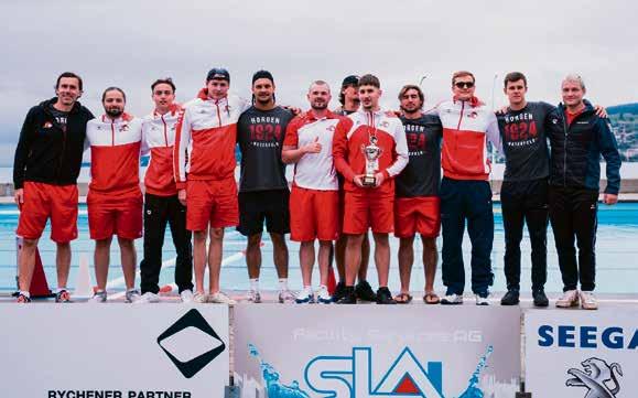 chancenlos, sah man in dieser Saison bereits grosse Fortschritte und erste Erfolge. Sowohl in der U15- als auch der U13-Meisterschaft konnte man die Vorrunde sehr erfolgreich gestalten: Die U15-Mannschaft hat in der Vorrunde jedes Spiel gewonnen und die U13-Mannschaft schloss die Vorrunde auf dem 3. Platz ab. Beide Teams qualifizierten sich somit für die Zwischenrunde in der stärksten Gruppe A. Dort kamen dann in erster Linie noch starke Mannschaften aus der Romandie hinzu, welche auch altersbedingt körperlich zum Teil klar im Vorteil waren. Aber auch hier konnten sich unsere Mannschaften behaupten und beide qualifizierten sich jeweils für das Final-6-Turnier. Das U15-Team scheiterte dann leider unglücklich im ersten Spiel gegen Lausanne, ansonsten hätte man um eine Medaille gespielt. Am Ende resultierte der 5. Rang. Für das U13-Team waren zuerst Lugano und dann Zürich zu stark, so dass man die Meisterschaft auf dem 6. Rang beendete. Diese Leistungen verdienen Anerkennung und Respekt: BRAVO und herzliche Gratulation! Überflügelt wurde in dieser Saison aber alles ganz klar vom Meistertitel unserer jüngsten Spielerinnen und Spieler des U11-Teams. Während man die Vorrunde auf dem zweiten Platz abgeschlossen hat, dominierte man dann das Final-6-Turnier. Zuerst besiegte man Carouge mit 12:1, im Halbfinal verabschiedete man Zürich mit 7:0 und im Final fertigte man Nyon mit 5:0 ab. So souverän ist schon lange keine Mannschaft mehr in irgendeiner Liga Meister geworden. Liebes U11-Team rund um die Trainer Csaba Papp, Vedran Galijas und Andy Fischl, einfach nur grossartig und GLÜCKWUNSCH ZUM MEISTERTITEL!! Ein grosses Merci geht an dieser Stelle an Marko Manojlovic, Vedran Galijas, Andy Fischl, Oliver Galijas und Csaba Papp, welche unsere Nachwuchsabteilung hervorragend betreuen und Jahr für Jahr auf ein neues Level bringen. Das absolute Highlight in dieser Saison war aber klar das 100-Jahr-Jubiläum mit dem internationalen Wasserballturnier, dem Damenspiel, den Spielen unserer Nachwuchsmannschaften sowie dem «Legendenspiel» im Käpfnach am Wochenende vom 23. bis 25. August. Im Festzelt, auf der Tribüne und im Pflotschi herrschte ausgelassene gute Stimmung und so boten sich den Spielerinnen und Spielern ein wunderbarer sportlicher Rahmen. Als Krönung fand am Samstag-