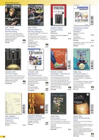 The Groove Encyclopedia For The Advanced 21st-Century Drummer Über 100 Grooves (53 neu!) für Drums von Tommy Igoe: Rock, Funk, Jazz, R&B, Hip Hop, World Grooves u.v.m. Play Along-Tracks auf MP3-CD. Lehrbuch mit CD in MP3 Format ISBN 978-1-4234-6445-7 HLE 6620125 23,95