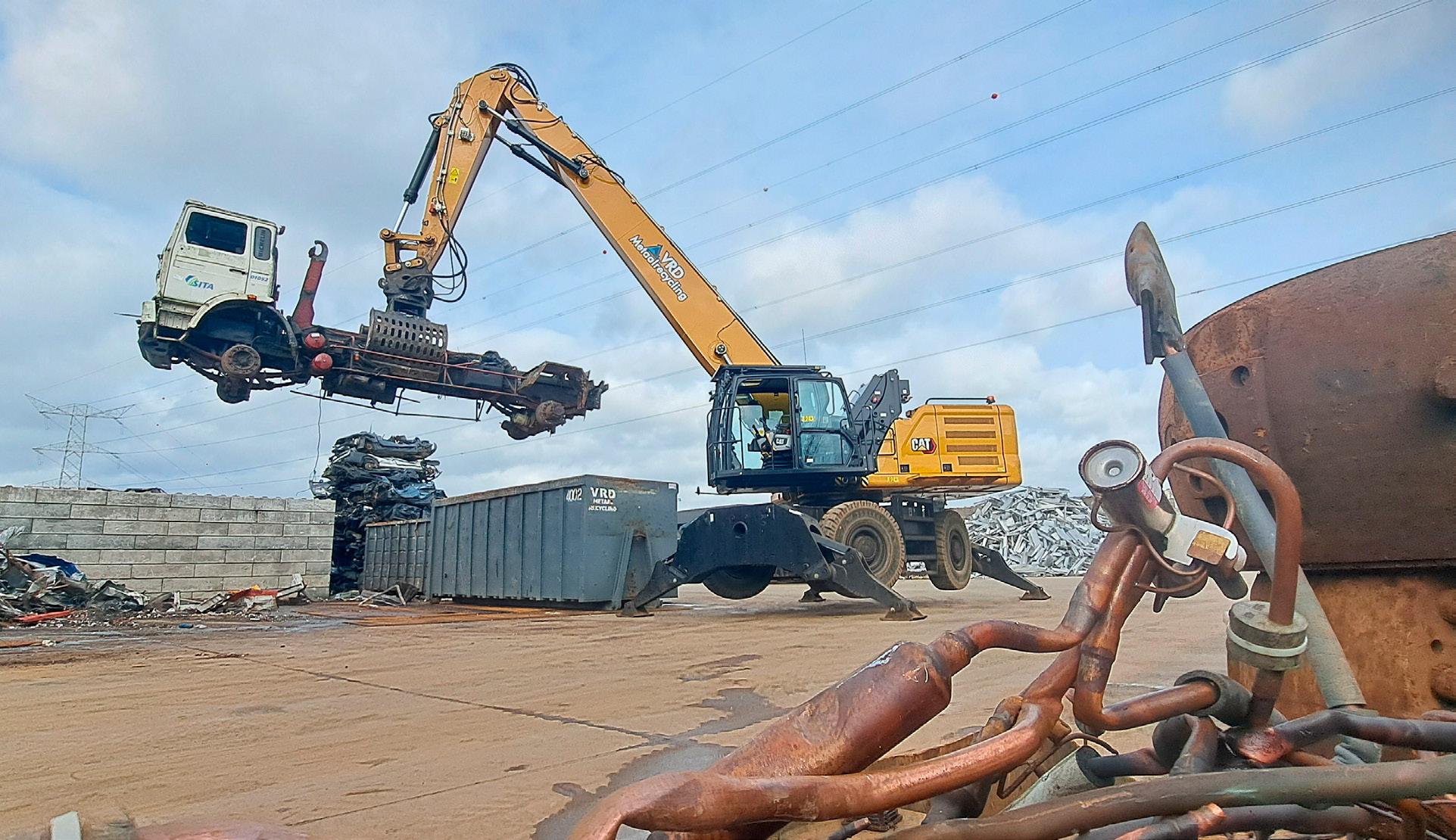 In de dynamische wereld van metaalrecycling is efficiëntie en betrouwbaarheid van essentieel belang. VRD Metaalrecycling uit Bree, België, begrijpt dit als geen ander. Met een lange geschiedenis van innovatie en verbetering binnen hun werkprocessen, heeft VRD onlangs hun vloot uitgebreid met een indrukwekkende nieuwe aanwinst: de Caterpillar MH3040. Deze machine, uitgerust met een aangepaste arm voor een sorteergrijper, is een perfecte match voor de veeleisende taken van VRD.