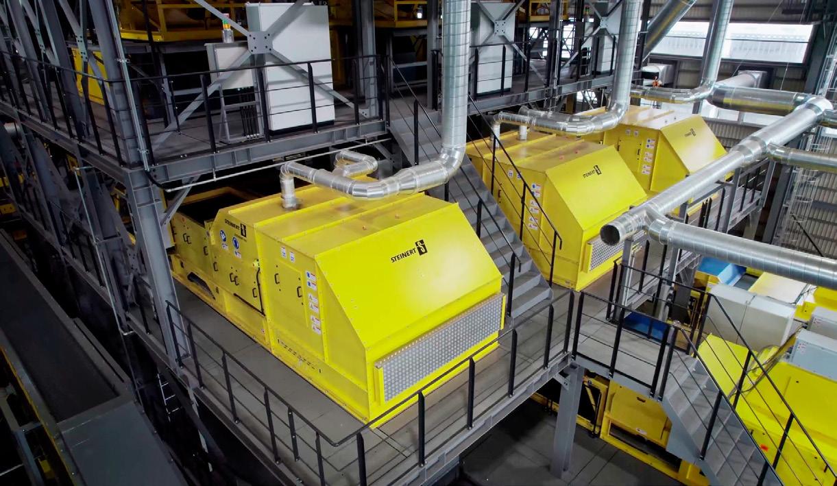 bereiten und dem Recyclingprozess zuzuführen – ein Bereich, der in vielen herkömmlichen Anlagen oft vernachlässigt wird. Für diese umfassende Materialverarbeitung sind in Tomakomai insgesamt 10 Steinert Sensor-Sortiersysteme, 6 Nichteisen-Metallabscheider sowie 2 Elektromagneten im Einsatz.