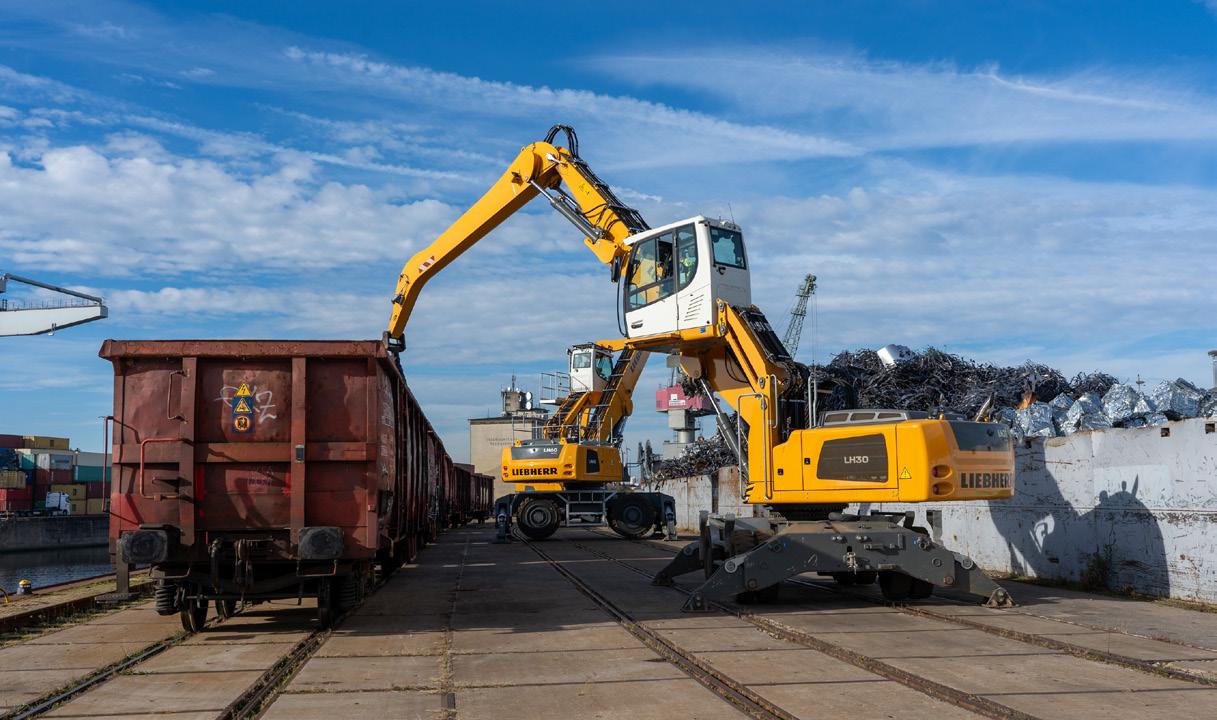 MODERNE TECHNIK UND HOHER KOMFORT Alle drei Maschinen leisten einen wichtigen Beitrag für den umweltgerechten Recycling-prozess. Die Entscheidung für Beutlhauser als Händler und Servicepartner und Liebherr als Hersteller hat sich laut Gerhard Kießling, Abteilungsleiter Werkstatt und Fuhrpark bei der RVR, bewährt. „Wir haben mehrere Hersteller bewertet. Entscheidend war für uns das Gesamtpaket.“ Liebherr-Umschlagbagger ver-