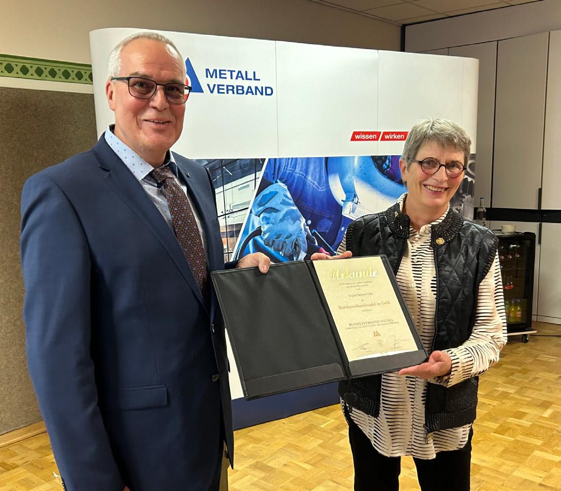 erfolgreiches Engagement im Metallhandwerk verlieh ihr Bernd Loosen, Vizepräsident im Bundesverband Metall, die Bundesverbandsnadel in Gold, die höchste Auszeichnung, die das deutsche Metallhandwerk zu vergeben hat. „Sie hinterlässt nicht nur ein starkes Unternehmen, sondern auch ein lebendiges Vermächtnis von Loyalität, Respekt und zukunftsorientiertem Denken“, betonte Loosen in seiner Laudatio.