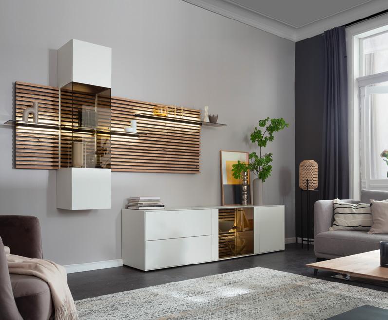 Mit YONNA hält Eleganz Einzug: Lamellen, Lack und Massivholz –damit ist jedes Stück ein echter Blickfang.