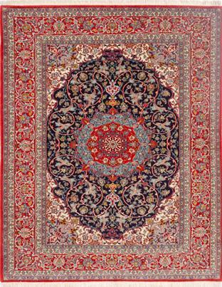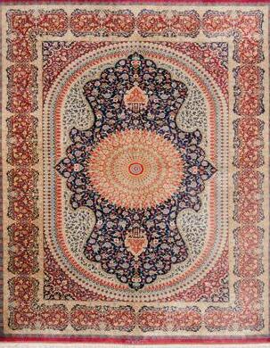 4 Teppich «Keschan» Grösse ca. 115 × 170 cm, handgeknüpft, Wolle mit Seide, Knotenzahl: ca. 200.000 Knoten/m², Herkunft: Persien, 184376 5 Teppich «Ghom Fein» Grösse ca. 140 × 205 cm, handgeknüpft, reine Naturseide, Knotenzahl: über 1.000.000 Knoten/m², Herkunft: Persien, 177576
