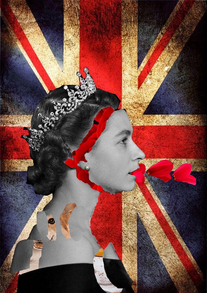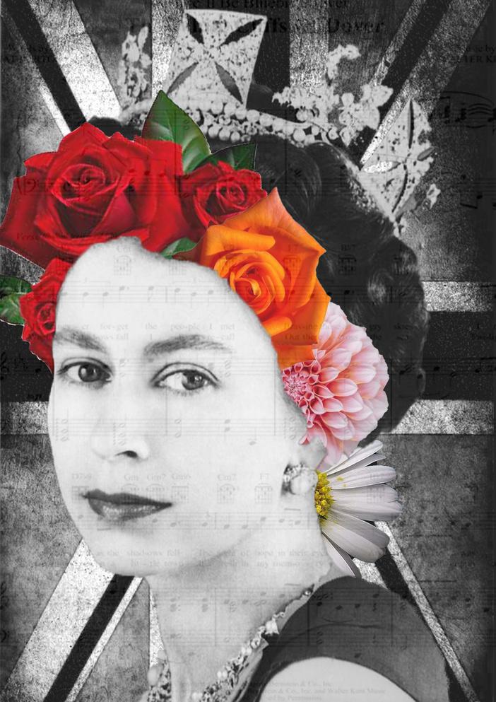 The images are in a Pop Art style and feature hidden meanings. They include lyrics of the Queen's favourite song, and using the queens favourite flowers