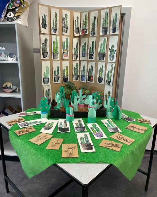 Year 7 had a fantastic display of Ana Serrano inspired cacti 3D models, and paintings. Year 8 wowed our visitors with their 3D Graffiti houses.