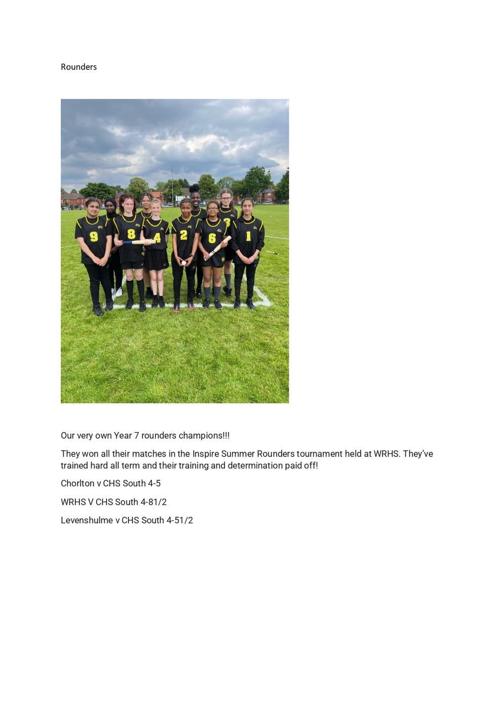 The uptake from the girls has been great with particular interest from the Year 7 girls. The team is is already enjoying success! They won all their recent matches in the Inspire Summer Rounders tournament held at Whalley Range High School.
