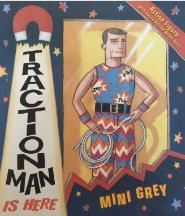 Write three sentences about Traction Man and the characters he meets. Remember to use capital letters, finger spaces and full stops. For example: Traction Man saves the dolls from the mud.