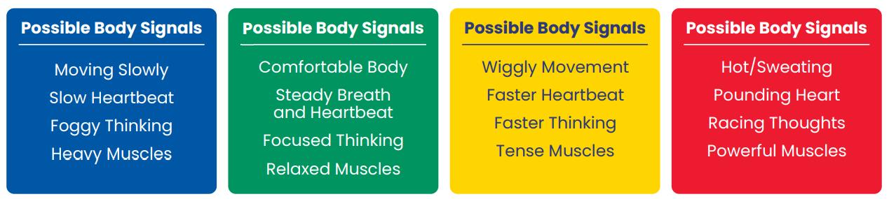 Zones of Regulation Lesson 4: we were taught to recognise the body signals which relate to our emotions and therefore the zones.