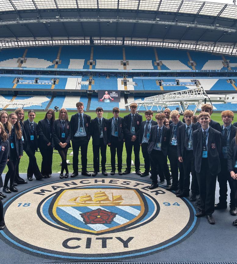 On Tuesday 14th October, two Year 10 Sports Studies classes visited the Etihad Stadium, home of Manchester City Football Club. The trip included an educational session focused on understanding the club as a business, alongside a guided stadium tour. Students learned how the club generates revenue and how this translates into profit. During the tour, they explored key areas of the stadium including the press room, home and away changing rooms, VIP spectating and dining areas, and even had the chance to sit in the manager’s chair. They also stood pitch-side and took in the impressive view of the stadium. All students fully engaged with the experience and represented the academy brilliantly. Well done to everyone involved — we hope you enjoyed the trip!