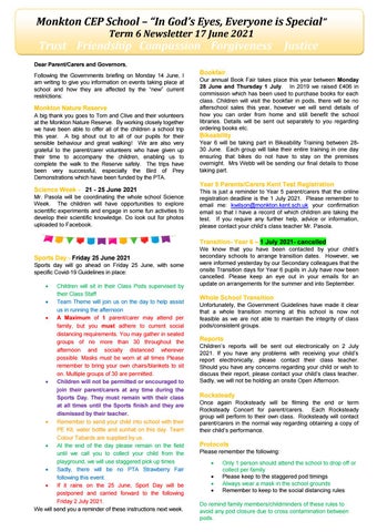 Monkton CEP School – “In God’s Eyes, Everyone is Special” Term 6 Newsletter 17 June 2021