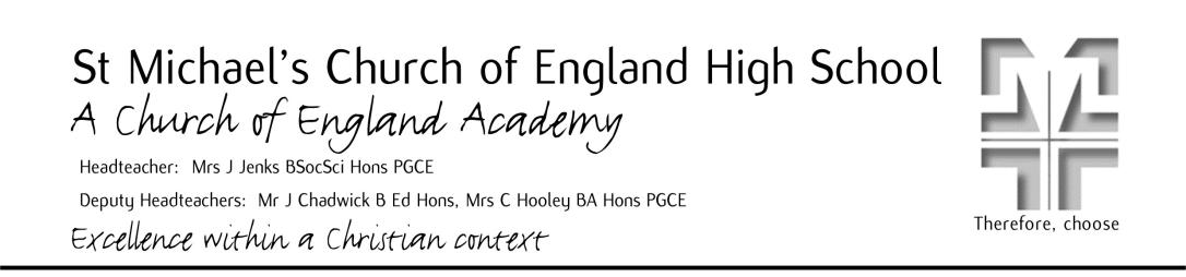 As a Church of England Academy within the Diocese of Blackburn, our values are rooted and grounded in the Christian faith.We set aspirational targets for all St Michael’s pupils and we provide an inspirational curriculum that supports the mission of the Church and recognises and responds to the diversity of pupils’ needs. ‘As a vibrant learning community we choose to serve God, pursue excellence and celebrate the uniqueness of each individual.’.