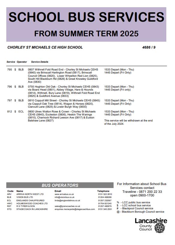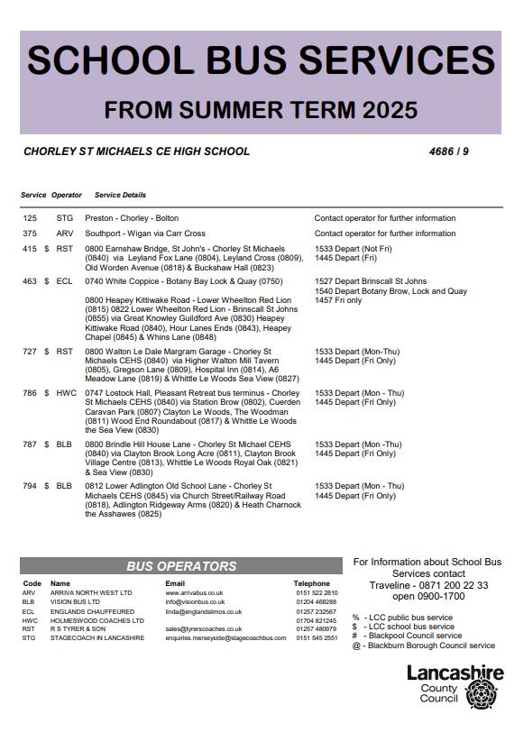 Bus services and timetable