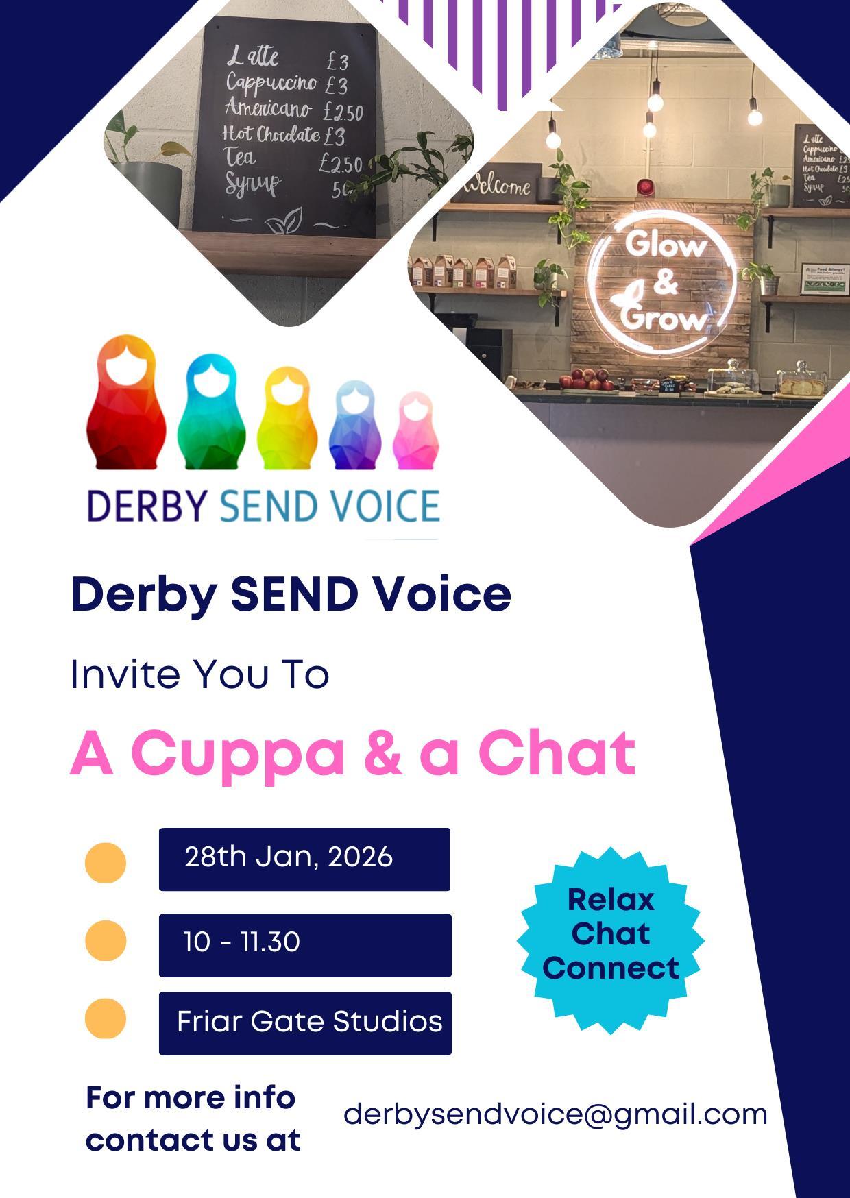 Please see the flyer further in the update for details of Derby SEND Voice’s latest event – a Coffee Morning on Wednesday 28th January at Friar Gate Studios (in the same building as our 6th Form!).