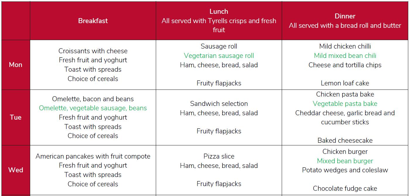 The children will be staying for 2 nights with breakfast, lunch and dinner all provided.