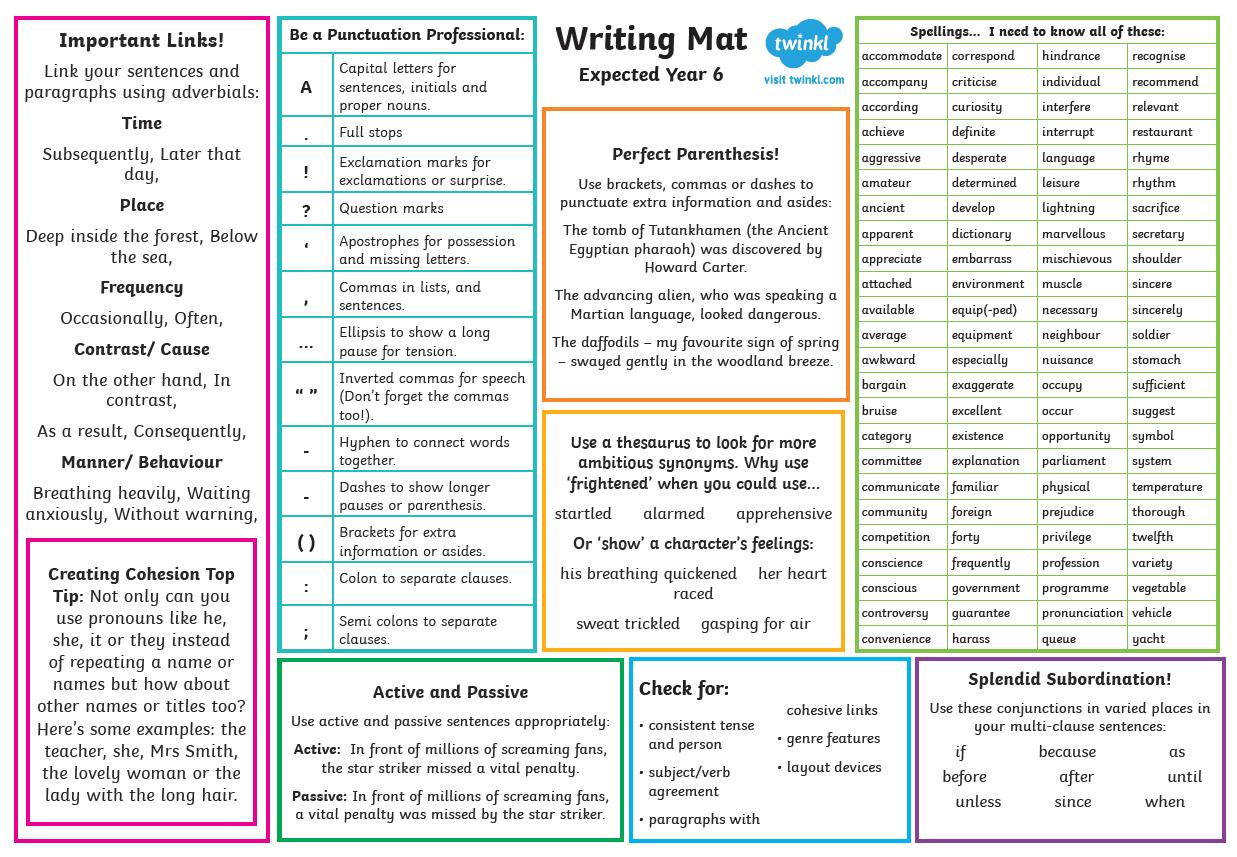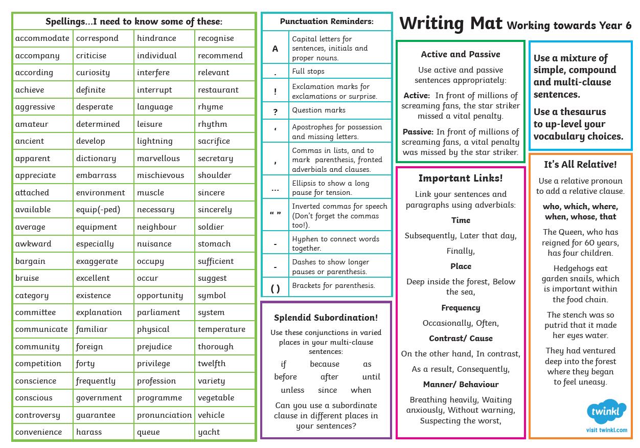 • Grammar, punctuation and spelling (paper 2: Spelling) –