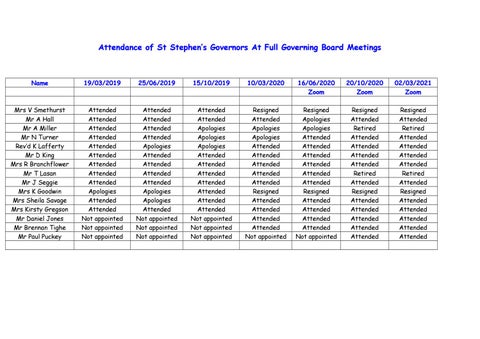 Attendance of St Stephen’s Governors At Full Governing Board Meetings