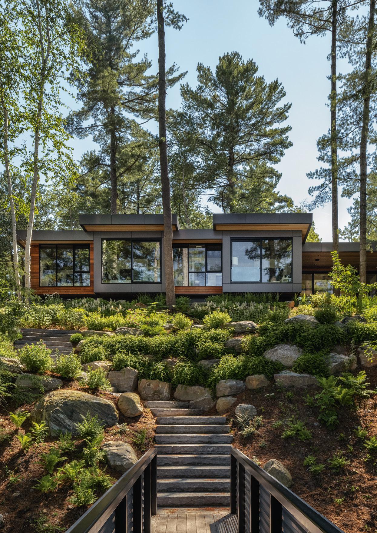 Finestre rettangolari e verticali, prive di traversi, enfatizzano l'entrata di luce.