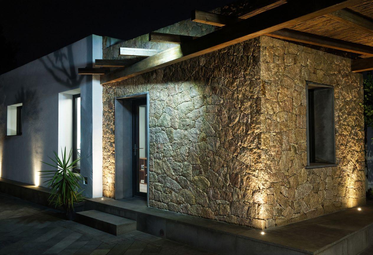 Da ogni bucatura, sia vetrata o finestra, si godono scorci differenti del landscape design esterno. I rivestimenti del fabbricato sono materiali locali, le tre pietre tipiche della Sardegna: il tufo di Sassari, il granito rosso gallurese e il basalto di Paulilatino.