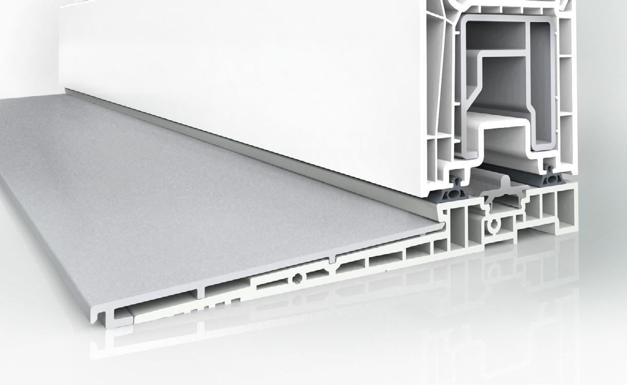 Alcuni dettagli in sezione della nuova soglia Schüco WPC che unisce PVC e legno