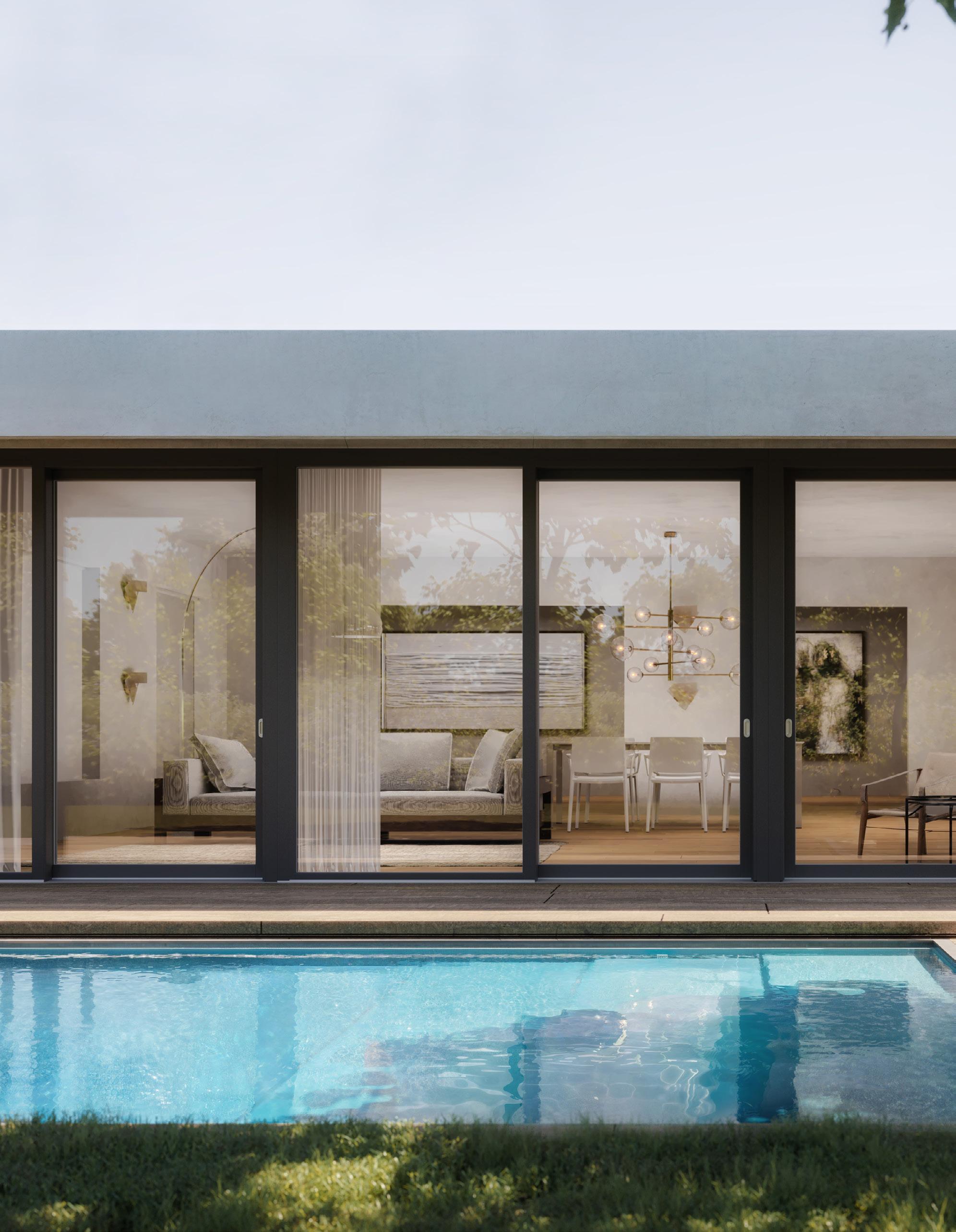 Evolution è il sistema per alzanti scorrevoli con tecnologia a polimeri dove funzionalità ed estetica si identificano, regalando il massimo di superficie vetrata. Ne risultano ampie vetrate panoramiche, capaci di esaltare il design degli interni e creare una sensazione di perfetta continuità con lo spazio esterno.