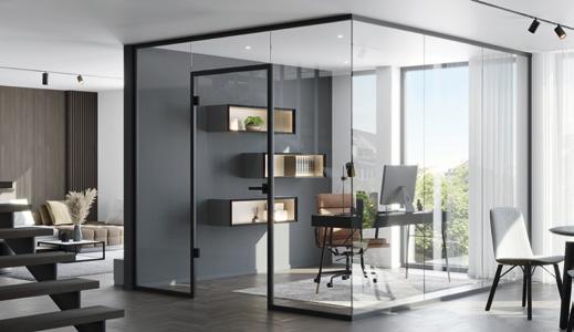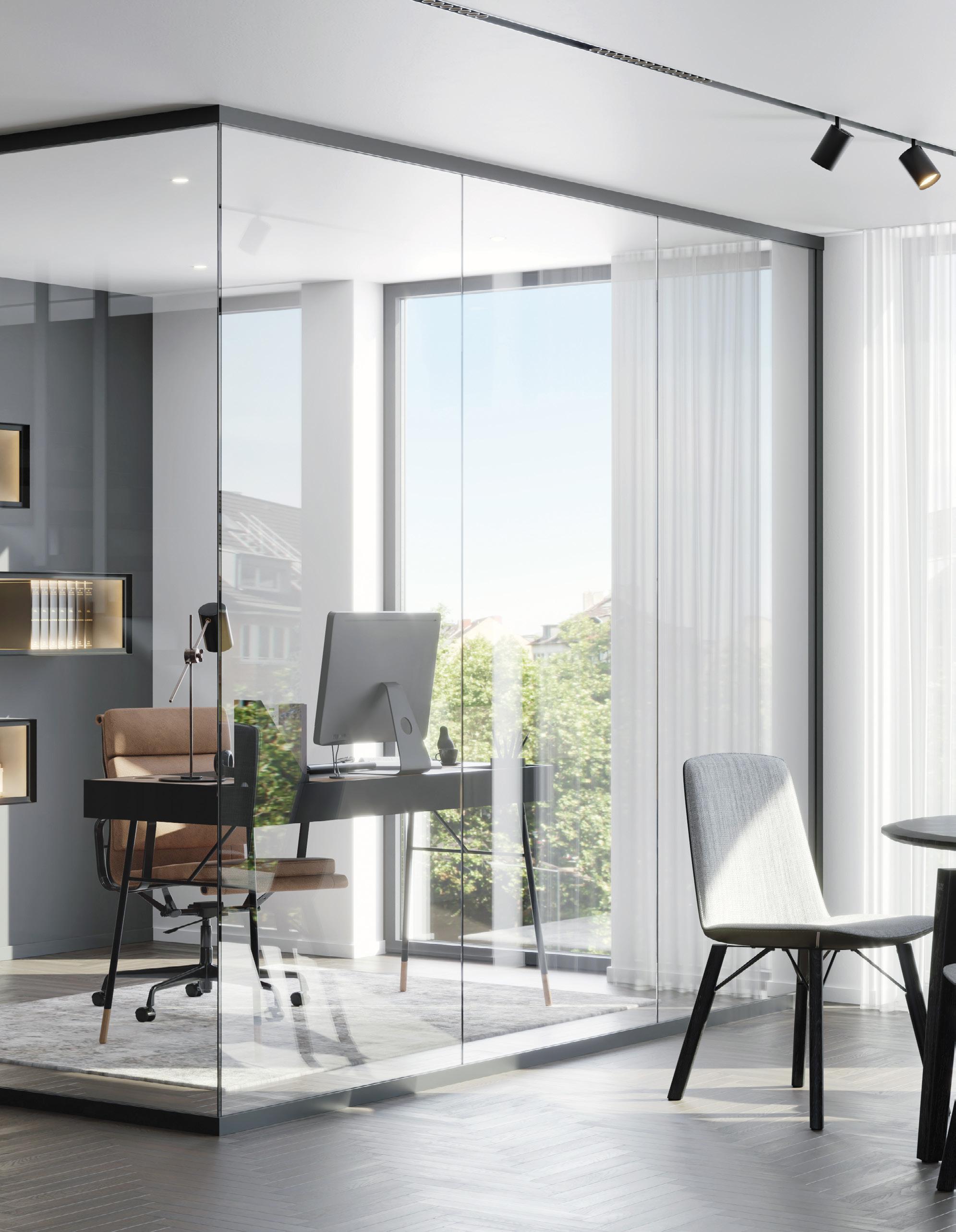 Il design ricercato e moderno di Schüco Interior è ideale per la realizzazione di progetti open space, dove la luce gioca un ruolo fondamentale.