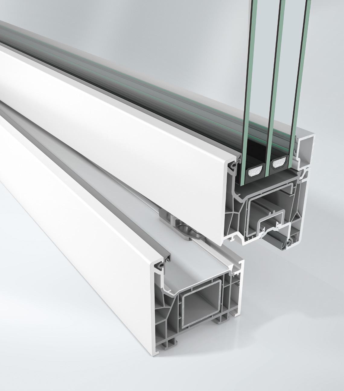 Schüco FocusIng è la soluzione che unisce le ottime proprietà di isolamento termico di Schüco LivIng mantenendo la profondità di 70 mm tipica di Schüco CT 70. Questa unione ha portato alla creazione di un sistema con una trasmittanza termica pari a Uf=1,1-1,2 W/(m²k), 5/6 camere con geometria ottimizzata e sezioni in vista del telaio di soli 70 mm.