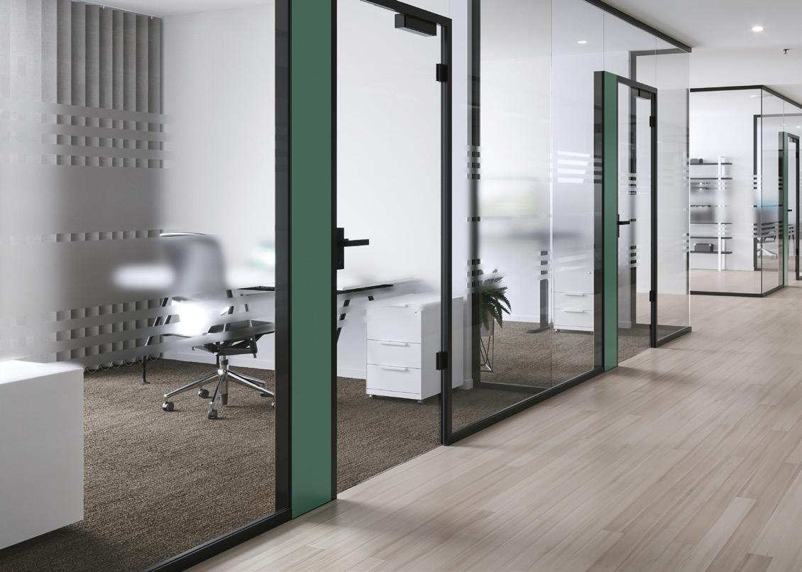 Grazie alla gamma di materiali di riempimento, Schüco Interior offre un’ampia varietà di opzioni che vanno dal vetro al legno fino all’alluminio.