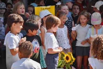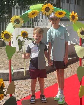 Der Start in dieses Schuljahr zeigte sich von seiner schönsten Seite: strahlender Sonnenschein, leuchtende Kinderaugen und eine Atmosphäre voller Erwartung und Aufbruchsstimmung. Besonders festlich war der Moment, als jedes neue Kind zur Begrüssung eine Sonnenblume überreicht bekam – ein Symbol für Wärme, Freude und den gemeinsamen Start in einen neuen Lebensabschnitt. Die farbenfrohen Blumen sorgten nicht nur für leuchtende Gesichter, sondern auch für ein Bild, das den sonnigen Tag perfekt abrundete.