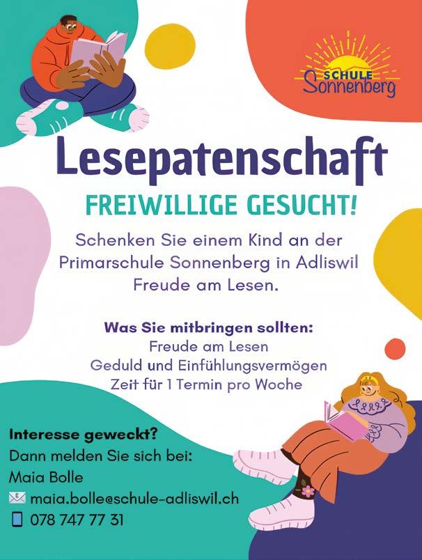 Falls Sie sich vorstellen können, Lesepate oder Lesepatin zu werden, dürfen Sie sich gerne an Maia Bolle ( maia.bolle@schule-adliswil.ch ) wenden. Wir freuen uns über jede Unterstützung!